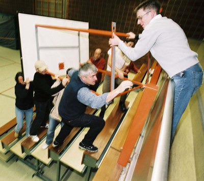 Als besonders "heavy" stellten sich schon beim Aufbauen der Halle die schweren, unhandlichen Basketballkörbe dar - das forderte Teamwork ersten Grades - kein Problem für die Hockeyfreunde aus Mayen.